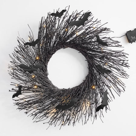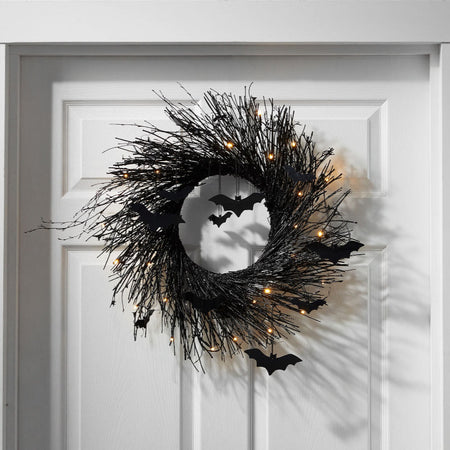 Flying bats set a perfectly eerie tone at Halloween festivities. Hang our lit wreath over a buffet table or in a covered porch for...