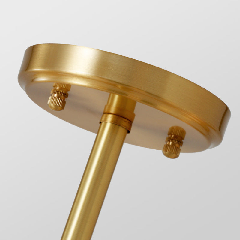 - This statement piece features an elegant combination of linear metal rods and opal/clear glass shades that take on a globe silhouette. Its satin brass finish allows it to blend in with a variety of color palettes