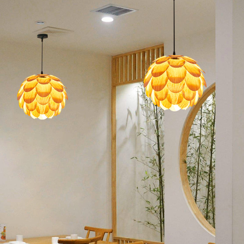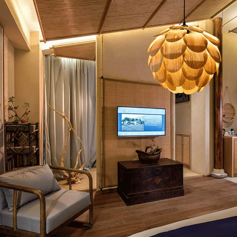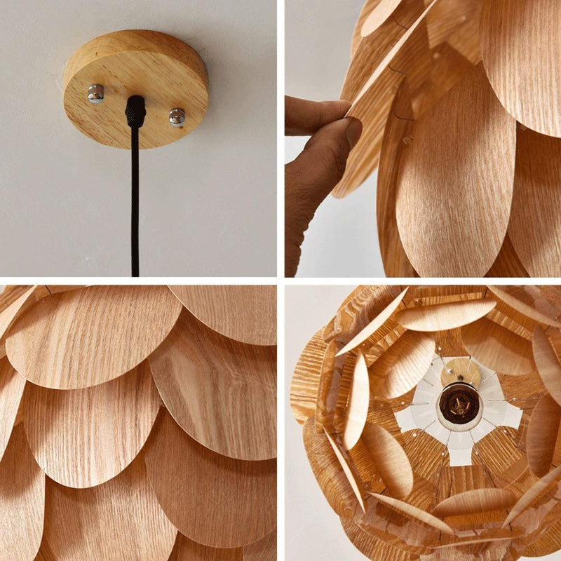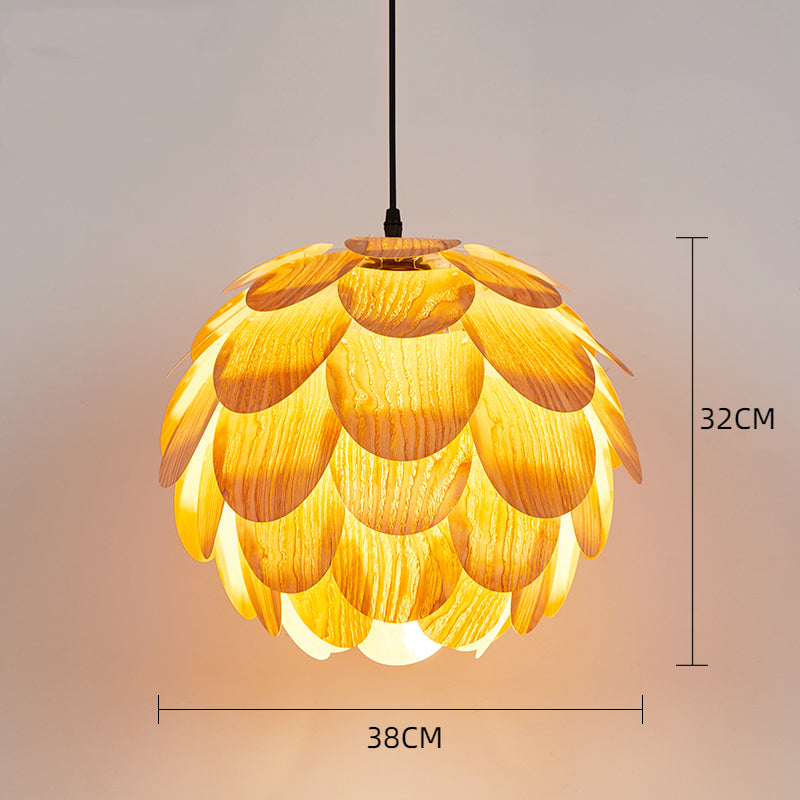 Nordic Wooden Single Globe Pendant Lights with Scale Accents